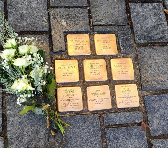 Die acht Stolpersteine vor dem Haus Markt Nr. 7 erinnern heute an die jüdische Familie Sachs.