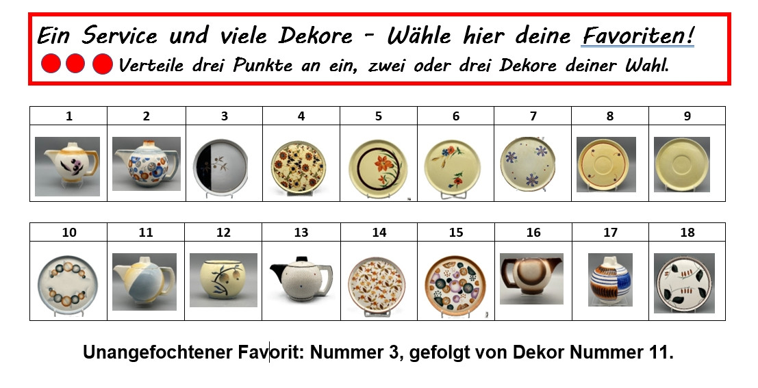 In den folgenden Jahren wird dieses Kaffee- und Teeservice mit unterschiedlichen Glasuren und Dekoren produziert; unterschiedliche Dekortechniken werden eingesetzt.