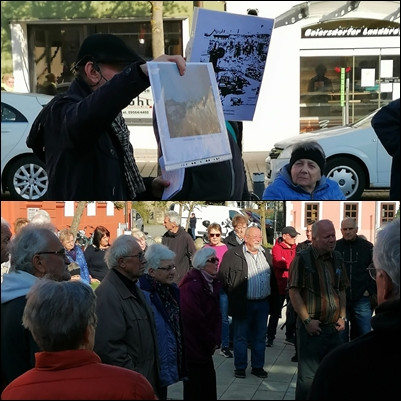 Gerd Oelsner leitete 65 Teilnehmende auf dem Rundgang, der zu einzelnen Orten führte, die an dieses Ereignis erinnern.